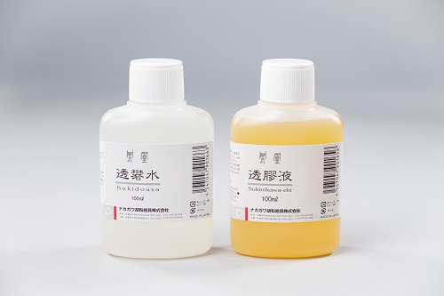この度、お試し用や教室用として使っていただける小さなサイズの透膠液と透礬水を作りました。