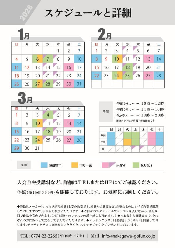 日本画教室木犀塾の2026年1月からのスケジュールのご案内です。